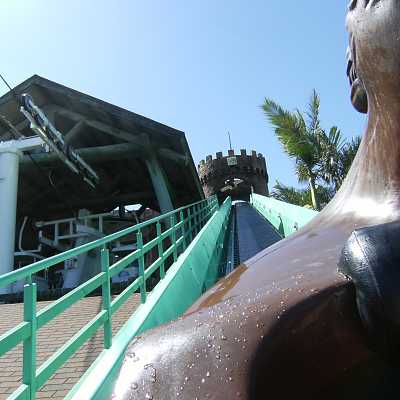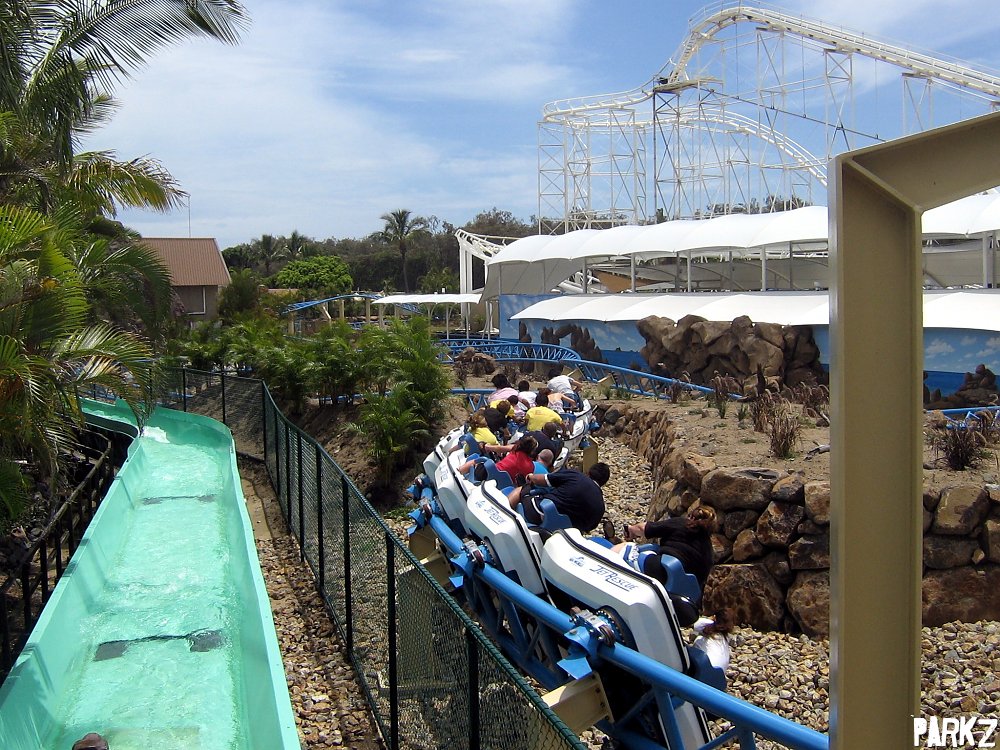 After rounding a forceful U-turn, guests enter a slalom, rushing closely past rocks.