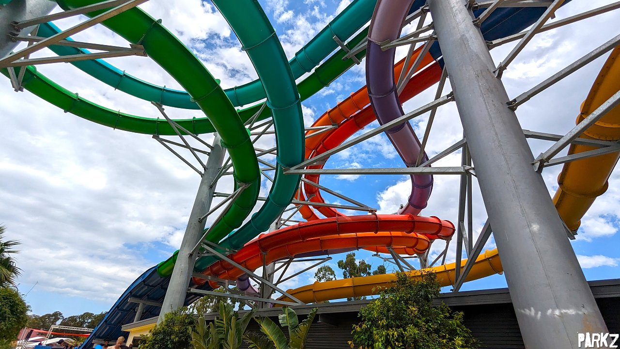 There are open air flume sections at the start and end, with a helix at the midpoint.