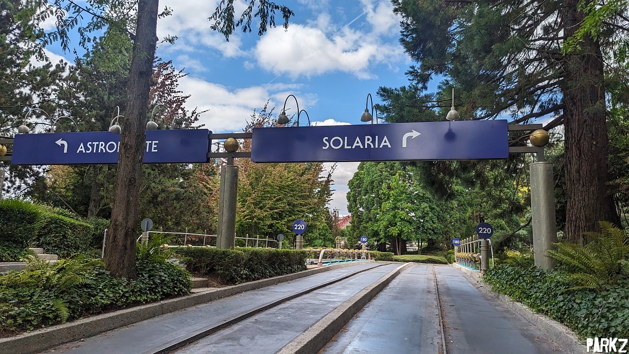 It is themed around a highway network of the future, with overhead signs promoting spaceage destinations.
