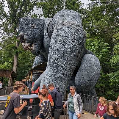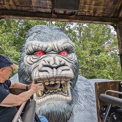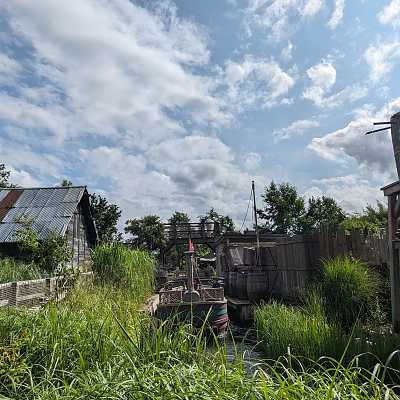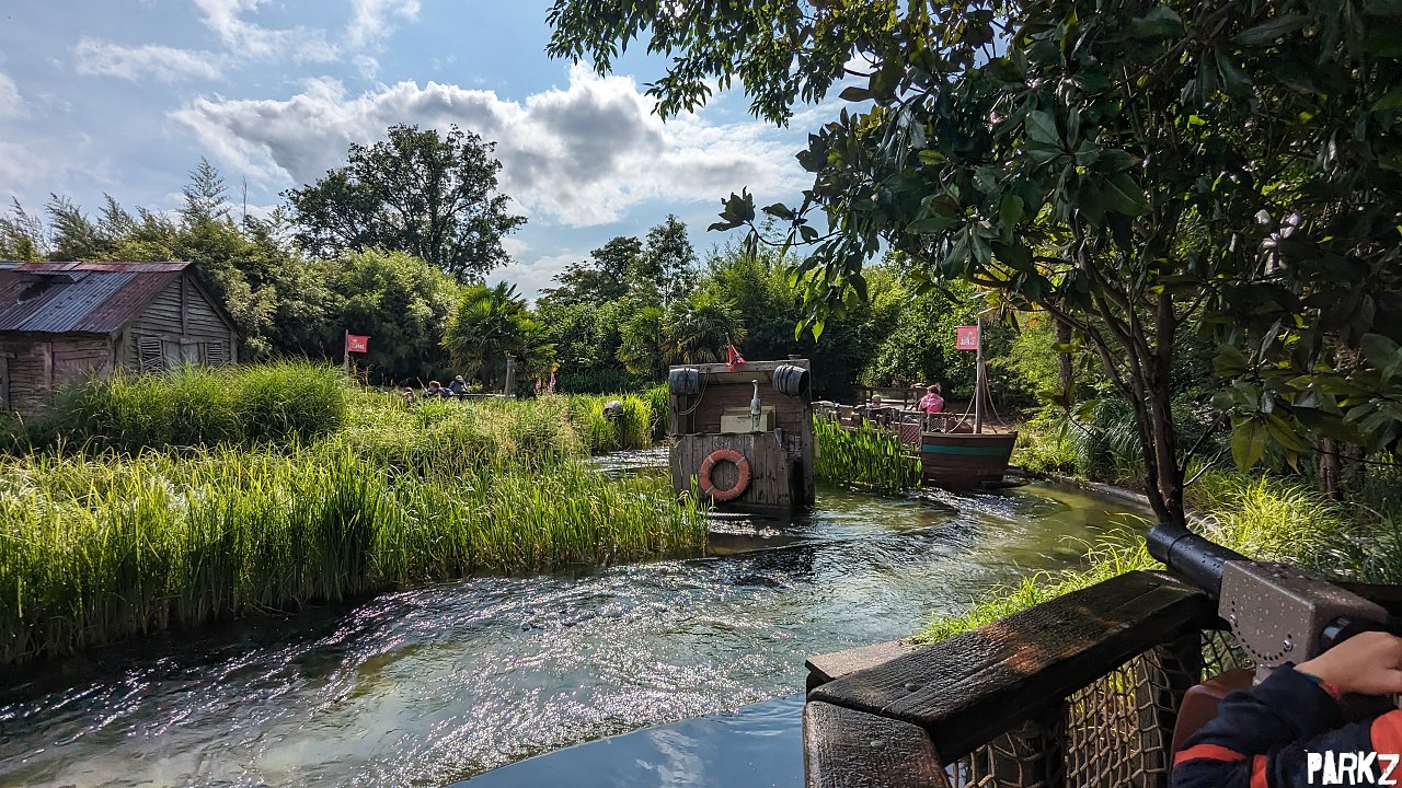 Guests shoot targets with crank operated water guns mounted on the sides of the boat.
