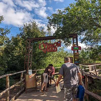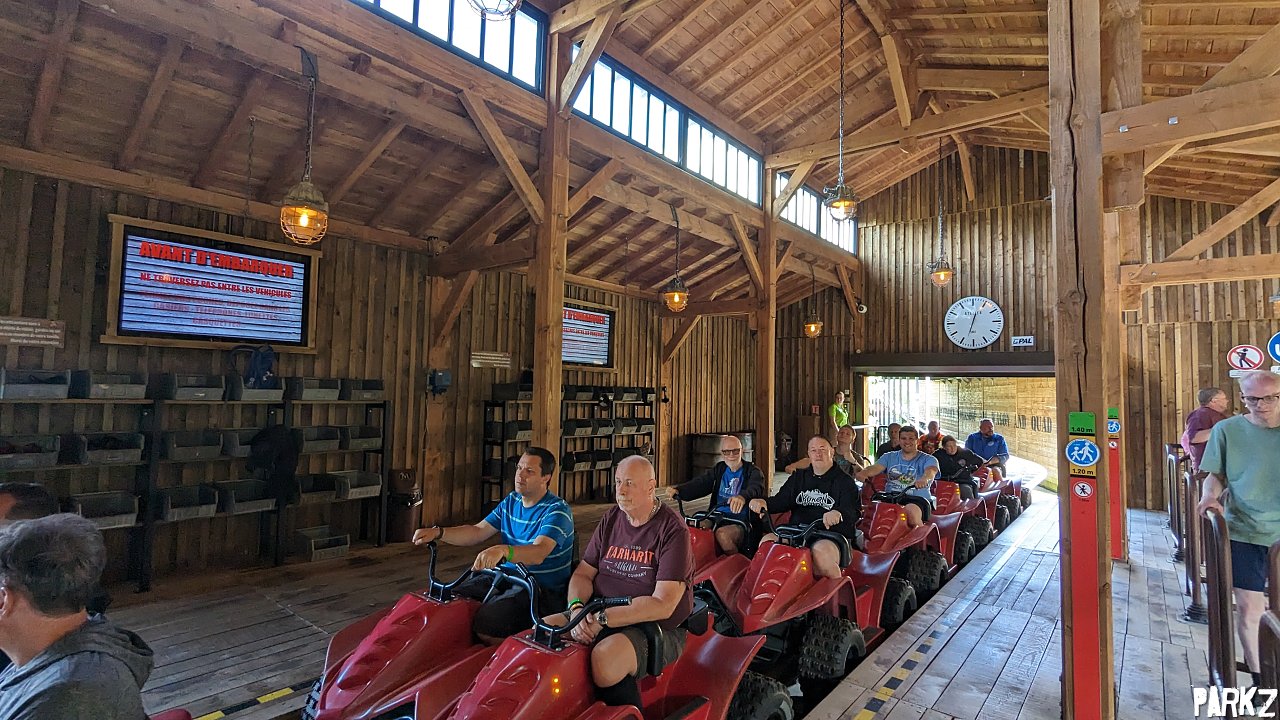 Guests straddle the saddle of a quad bike, held in only by a lap bar.