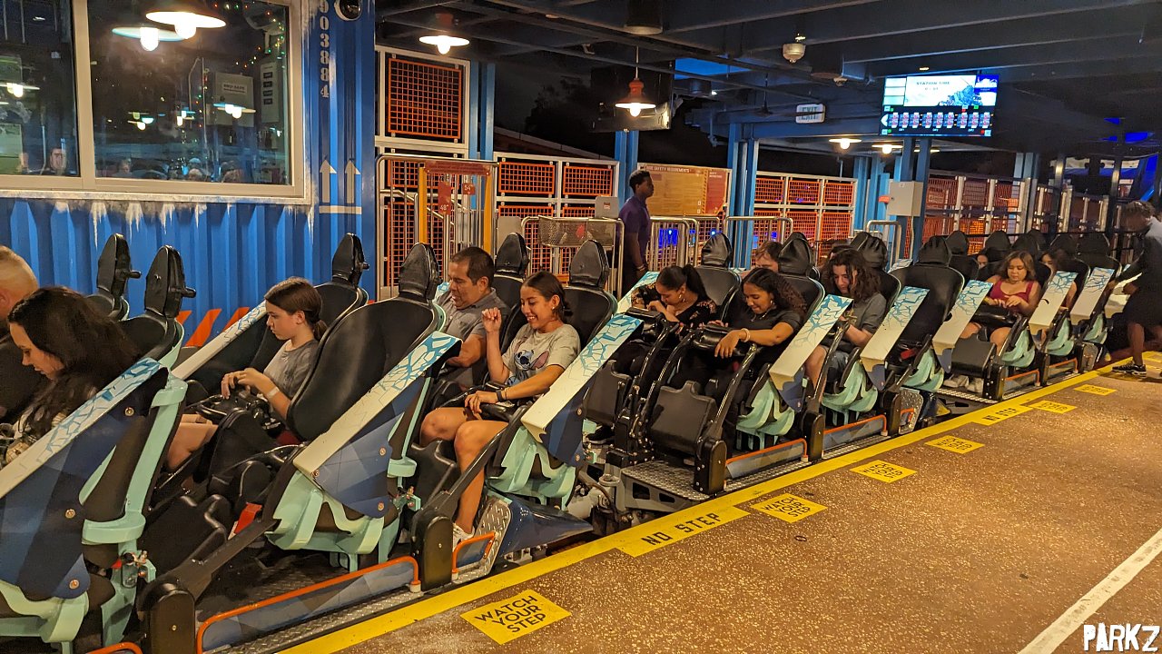Riders sit in rather compact trains, held in only by lap bars.