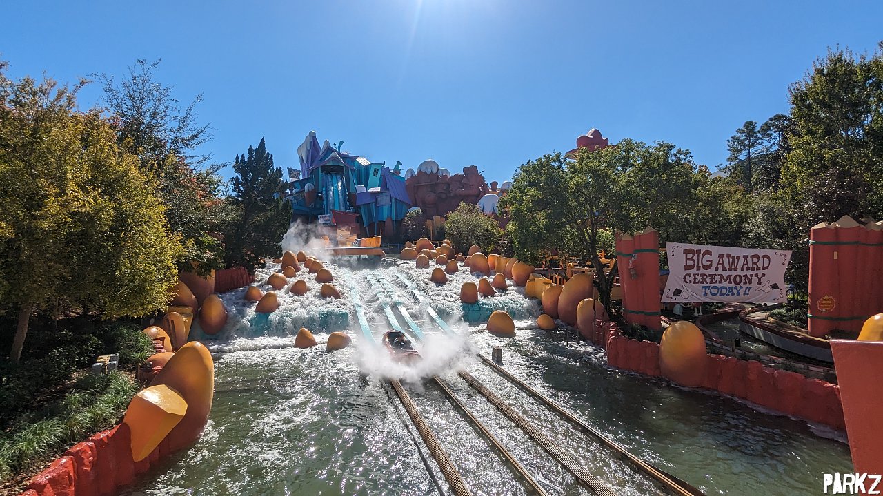 Dudley Do-Right's Ripsaw Falls's big splashdown.