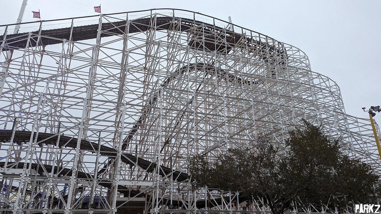 The ride originally opened with wooden track, built on a steel structure. Certain sections with strong forces have been refitted with RMCs "208 Retrak" steel track.