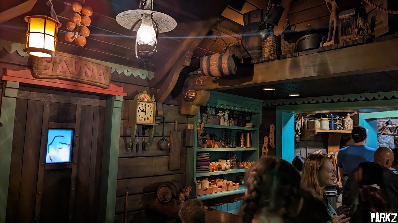 At one point you pass through Wandering Oaken's Trading Post and Sauna.