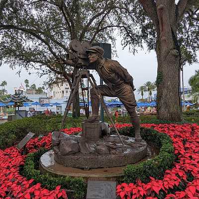 Below this cameraman statue, you'll find the dedication plaque for the park.