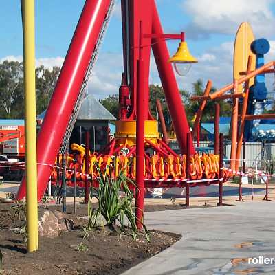 The theming of The Claw is coming together. This unique touch illustrates the ride's theme of this new attraction "tearing" into Dreamworld.