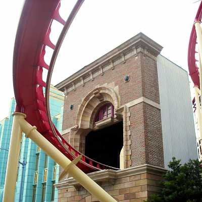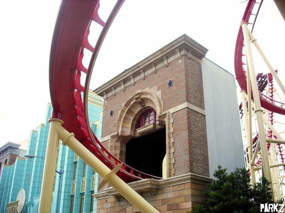 At the bottom of the drop you shoot through this fire station building.