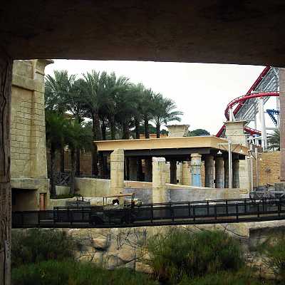 The ride is a little more advanced than your average car ride, with a few simple animatronics and sound effects along the way. The supports on this bridge for instance fall away as you drive past.