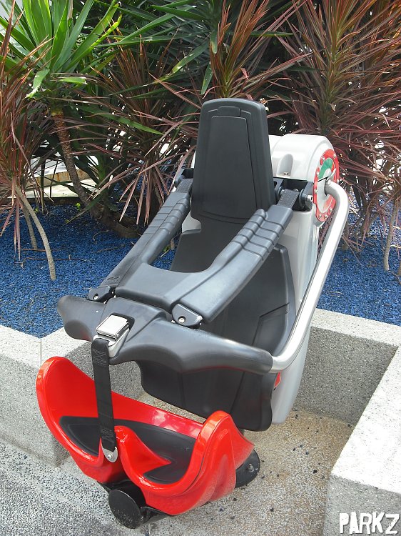 The ride was the first installation of Vekomas new track and train technology. The company has shifted to a more comfortable seating design, where instead of a hard foam harness, the restraint is a very comfortable rubber vest and lap bar.