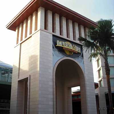The arch at the front gate swaps the normal art deco design seen at the other Universal parks for more of a local design flavour.