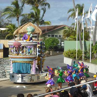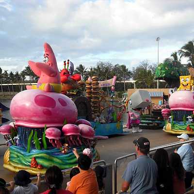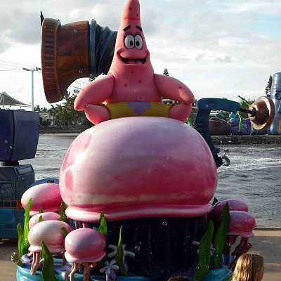 Thankfully a solution is in sight. Patrick and Spongebob turn up on a couple of Jellyfish, which they use to jump start the parade again.