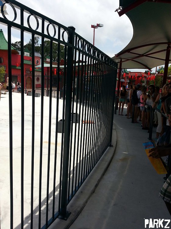 The vast majority of riders were choosing the "Hard Style" queue, with the "Soft Style" queue (seen on the left) virtually deserted. This meant the ride was basically run hard style on most cycles, with soft cycle beign run when enough guests turned up to warrant it.