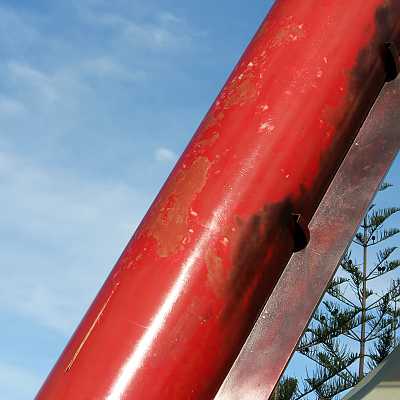 The top of the tower and motor housing has been repainted, really highlighting the faded paint.