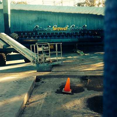 The repainted operator booth and wave.