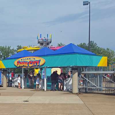 The slide is a "Whizzard", where riders race around a helix and down the straight. You can see that the spirals cross over each other in the interests of keeping them the same length for a fair race.