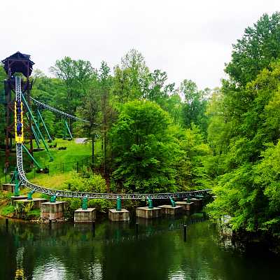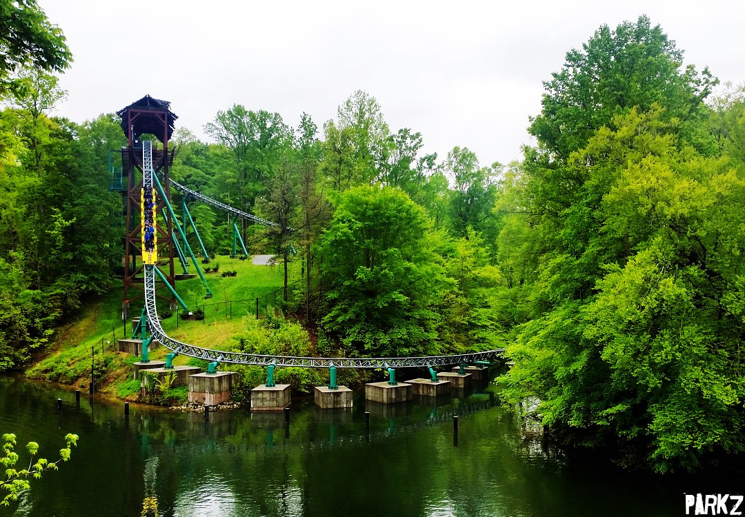 The turn over the river recycled the footings of the "Big Bad Wolf" coaster which previously stood on the site.