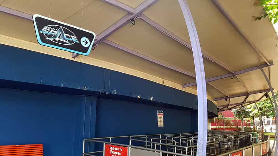The rather low key entry to the attraction. Why didn't they make it look like a space portal?