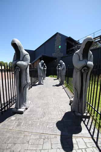 Like the other thrill rides it is clustered with, it has a demonic spooky theme.