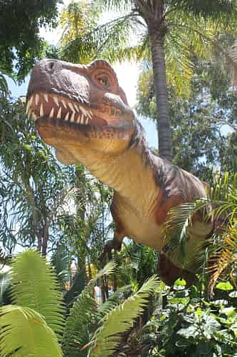 The Dinosaur Island exhibit – which featured previously at Sea World – is not on display at Adventure World.