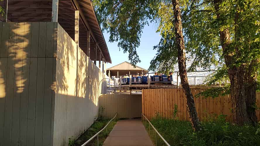 The layout is fairly simple, an out and back design with several hills, though the whole layout is bent like a banana.