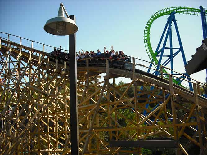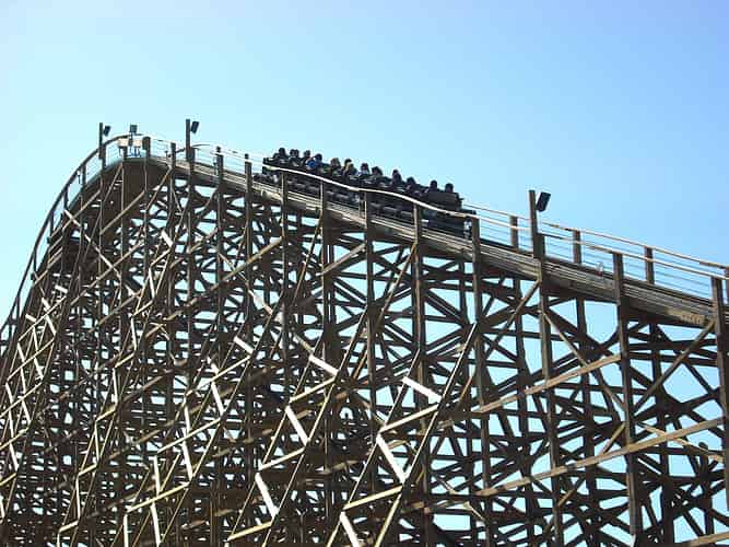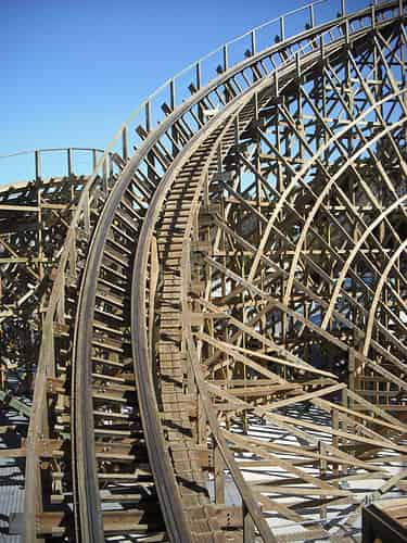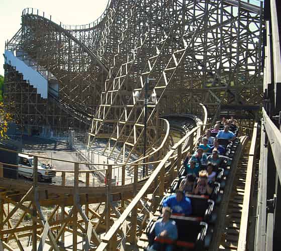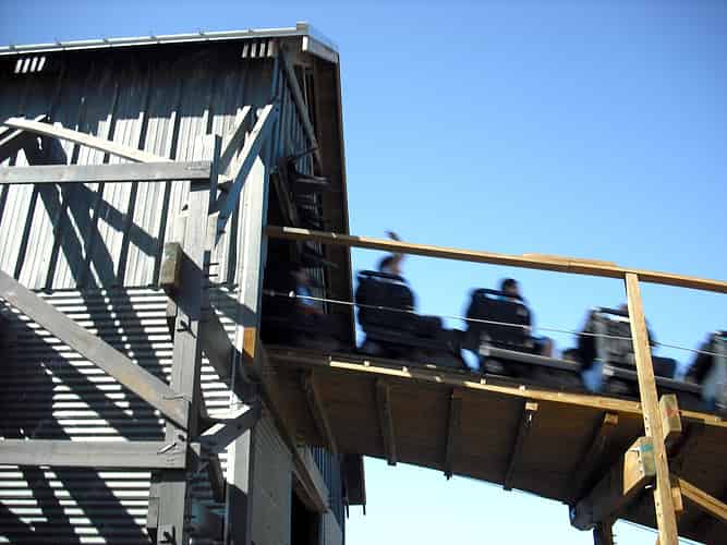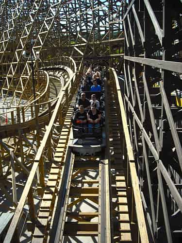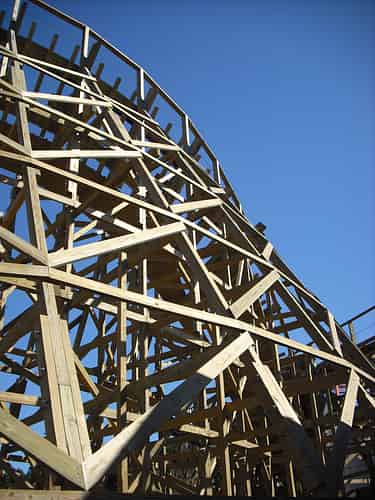 If you have ever wondered how the track on a wooden coaster goes together, the exit stairs provide a very close look.