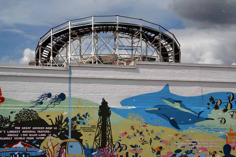 From the boardwalk and beach only the southern tip of the ride can be seen.