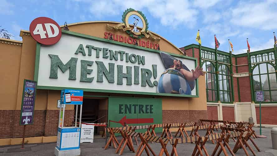 Attention Menhir 4D follows the Romans attempts to invade the village of the Gauls. Of course, Asterix and Obelix hold them off.