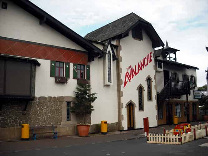 Avalanche is a classic bobsled coaster, where guests ride in wheeled bobsleds down a run, gaining speed the whole way down.