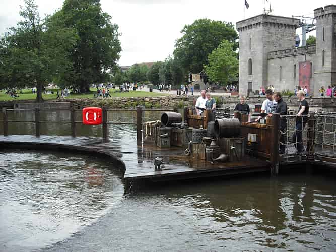 Battle Galleons is an example of one of the newer attraction concepts to hit the theme park industry....Guests riding in boats equipped with crank operated water guns, firing on bystanders, other boats, and special targets.