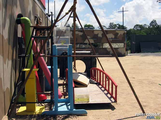 This is where the Arena used to be. Some props from Friday Night Live remain. The remaining walls were later taken down and replaced by a new covered arena with stadium seating that was used for the series “Friday Night Games” and the 2006 Big Brother season.