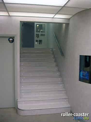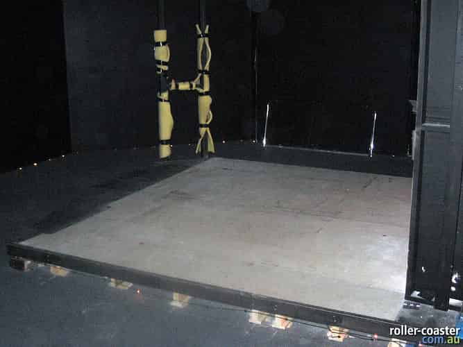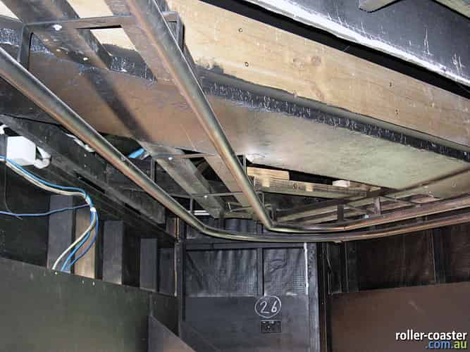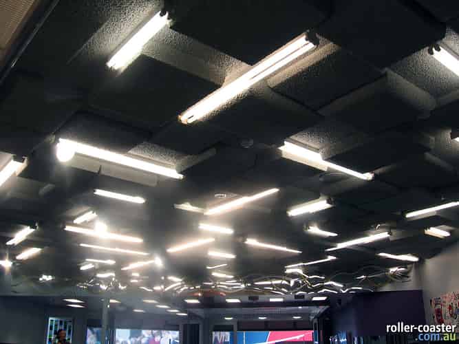 This is “behind the scenes” in one of the camera runs. During filming movable cameras hang from the overhead rails.