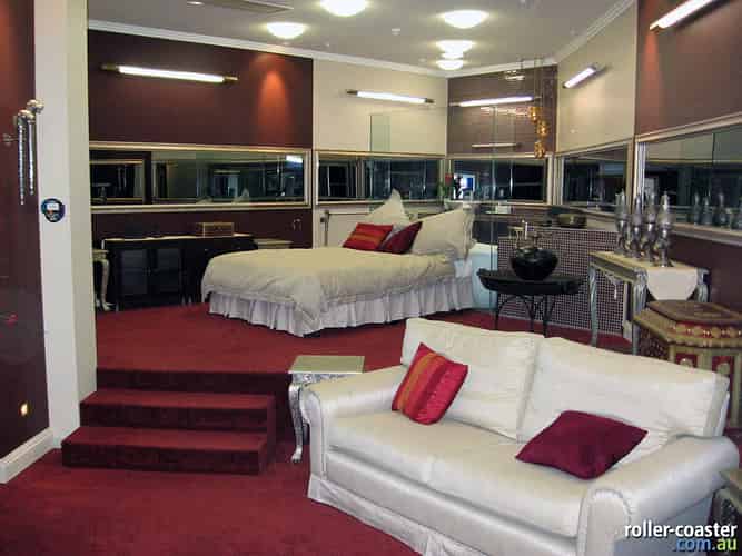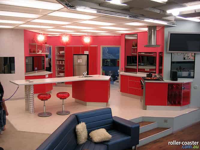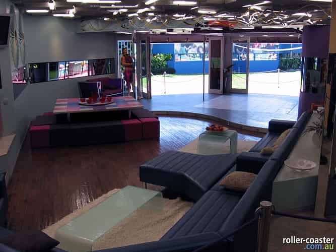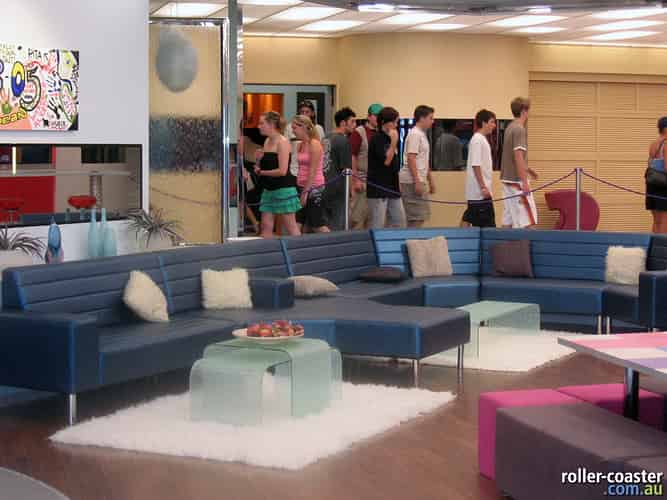 Behind the lounge is the indoor waterfall outside the bathroom door, the diary room door, and the yellow roller door is where the mini AMF bowling alley once was (now located in Dreamworld’s arcade).