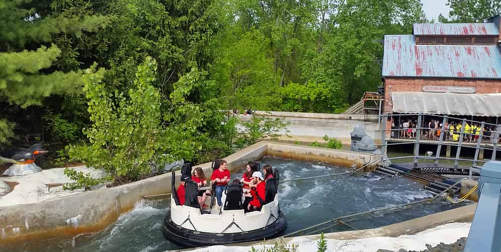 Blizzard River is a river rapids raft ride which previously was themed around the Batman villain, Penguin.