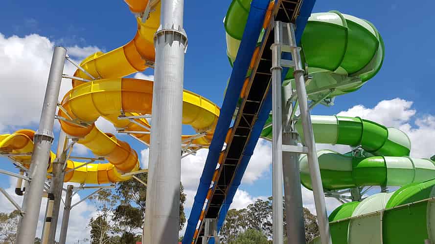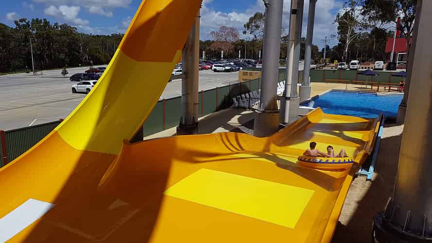 Boomerango is a family raft slide consisting of a few twists and turns leading into a drop into a huge quarter pipe. A smaller version of this exists at Wet n Wild in Sydney.