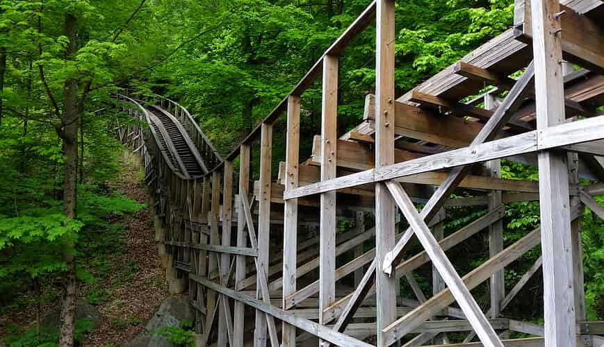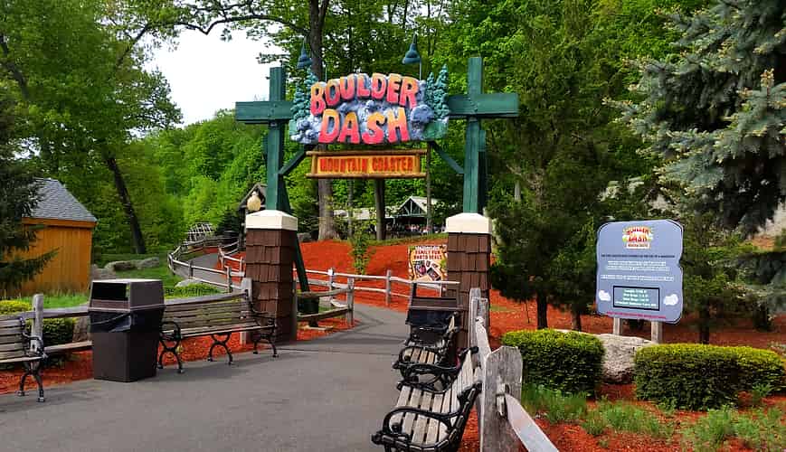 Boulder Dash is a unique, fast paced wooden coaster that runs down hillsides and through woodlands.