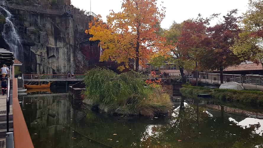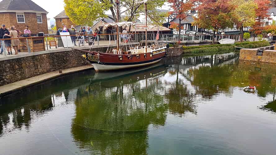In the middle of the park is a lake, with the rail guided Brig Tamar Cruise boat ride,
