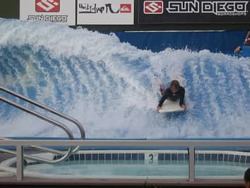 The attraction is essentially a more advanced version of the FlowRider attraction seen at many water and theme parks. It was previously used for traveling demonstrations but is now a permanent attraction in the Wave House area of Belmont Park.