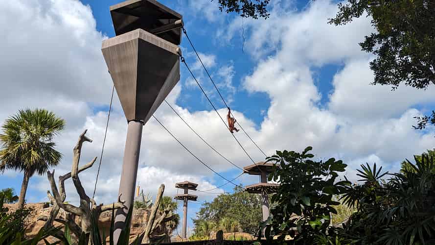 Orangutans playing overhead.