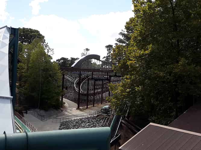 A good amount of the ride hardware was recycled from the now defunct "Gwazi" wooden coaster at Busch Gardens Tampa.