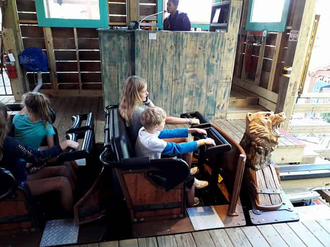 The ride has a signature GCI twister layout, albeit not as intense as the ones typically seen at Six Flags and Cedar Fair parks.