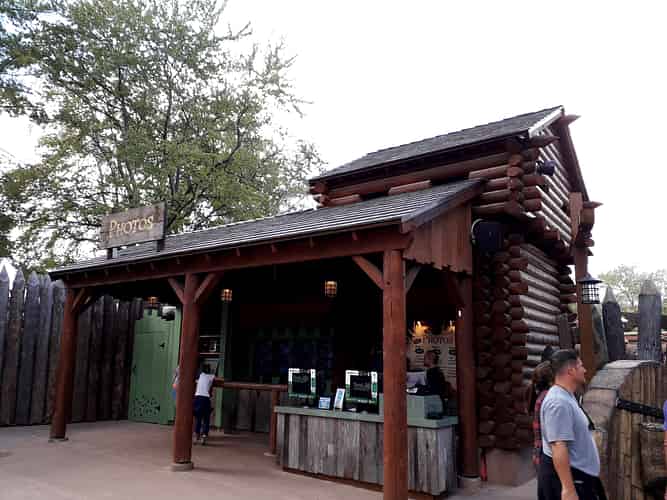 The ride has a theme of a village being invaded, with hasty fortifications surrounding the ride.