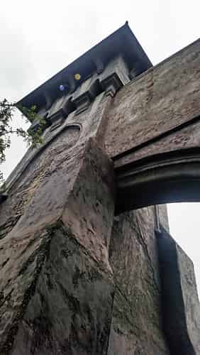 Guests enter the castle through a gloomy colonnade.