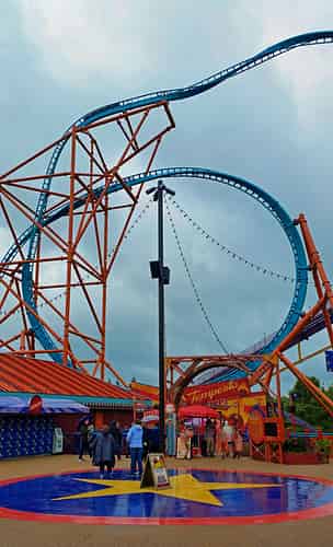 The track then drops sharply into a vertical spiralling drop. Ride in the back for maximum airtime!