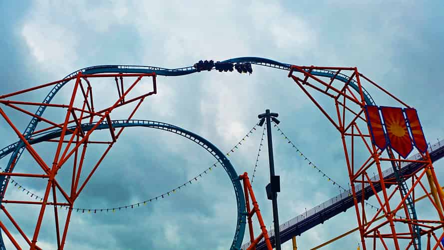 At the top of the lift you glide around a u turn and teeter for a couple of seconds at the top of the vertical drop.