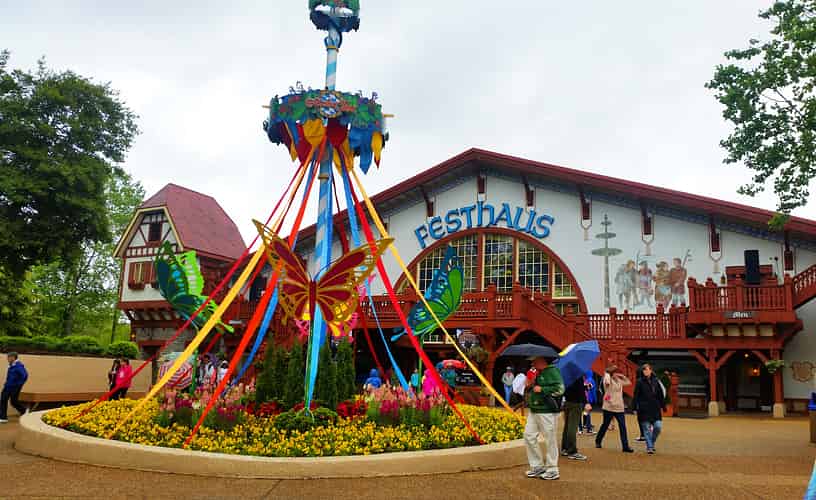Festhaus is the largest eating and entertainment venue in the park, reminiscent of a German Oktoberfest beer tent.