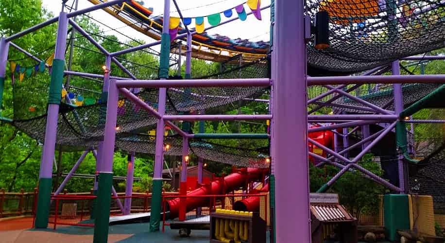 The net climb area also features slides and musical instruments.