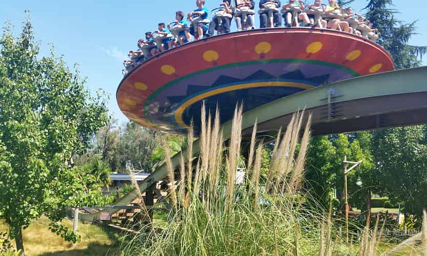 Tiki Twirl is a Disk'o "Coaster". It spins around whilst gliding along a short length of roller coaster style track.