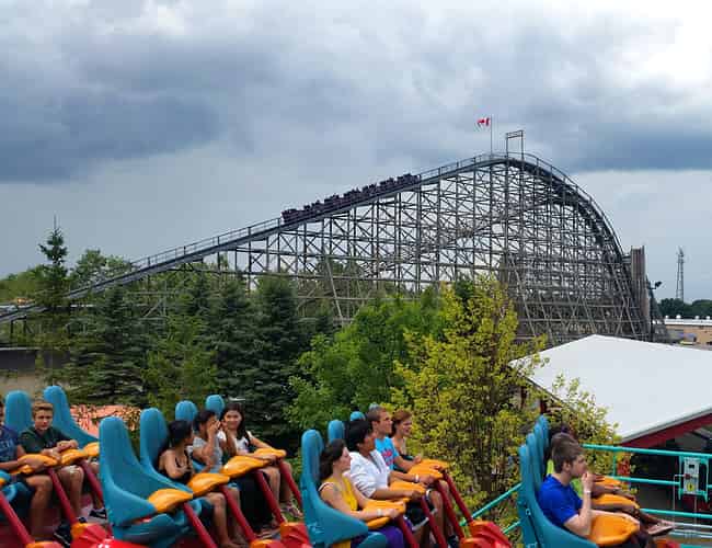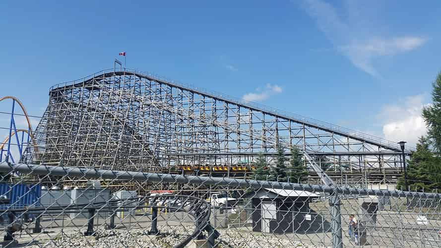 Mighty Canadian Minebuster is the largest wooden coaster at Canadas Wonderland.