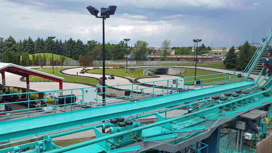 After the mid course brake run the track spirals down through 540 degrees and back up through 270 degrees. One last hill and you're at the final brake.